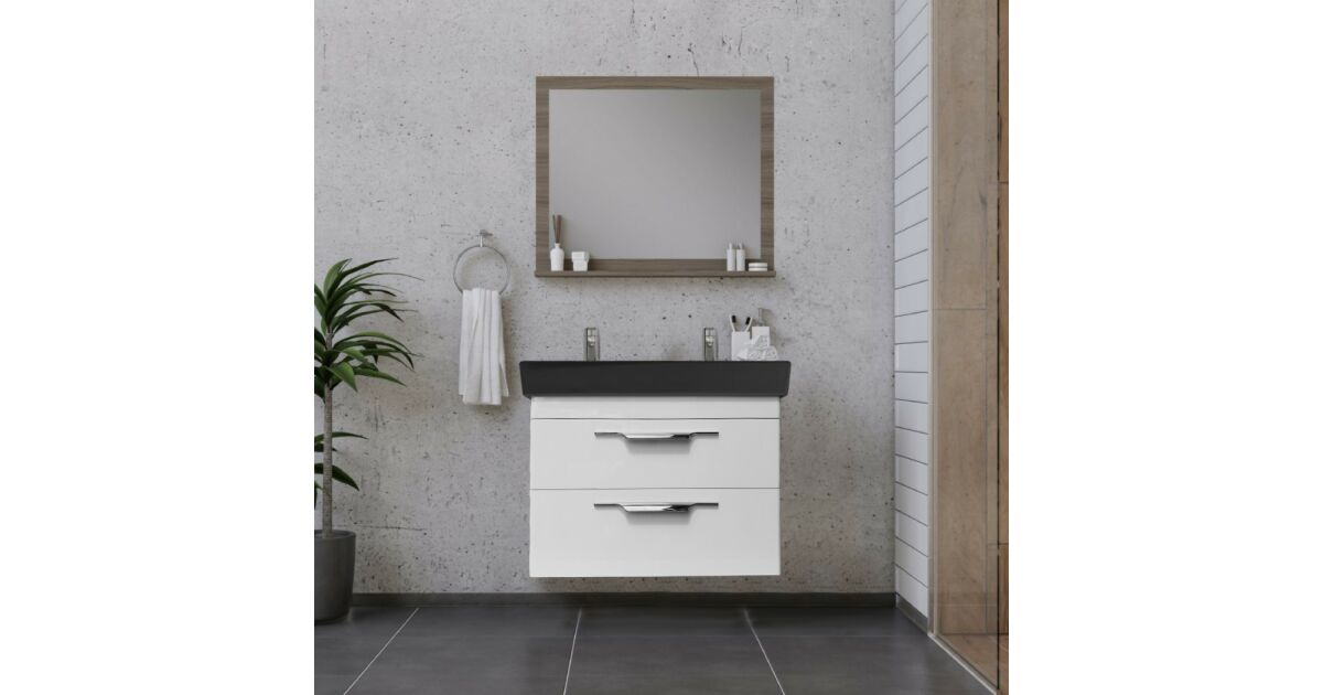 - Anyag: Magasfényű fehér bútor, kerámia mosdó