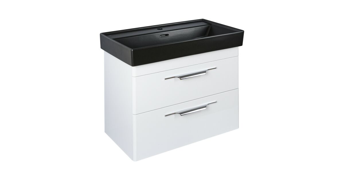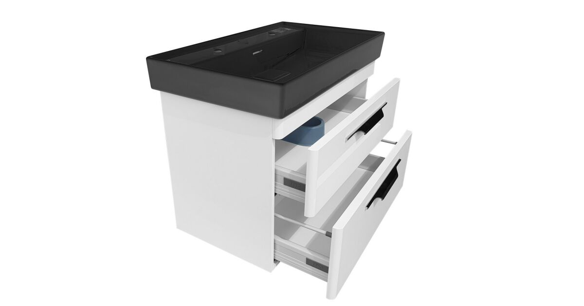 Ez a stílusos és praktikus fali fürdőszobabútor tökéletes választás a modern fürdőszobákba. A fehér magasfényű kivitel és az elegáns antracit színű CeraStyle SHARP mosdó lenyűgöző megjelenést kölcsönöz a fürdőszobának. Két tágas fiókjában kényelmesen tárolhatja fürdőszobai kellékeit.