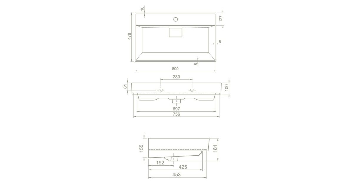 TMP SHARP 80 fali fürdőszobabútor - CeraStyle SHARP - 37300 mosdókagylóval - 80 x 48 cm leírása