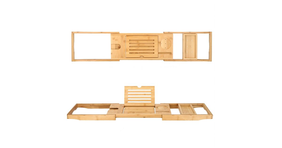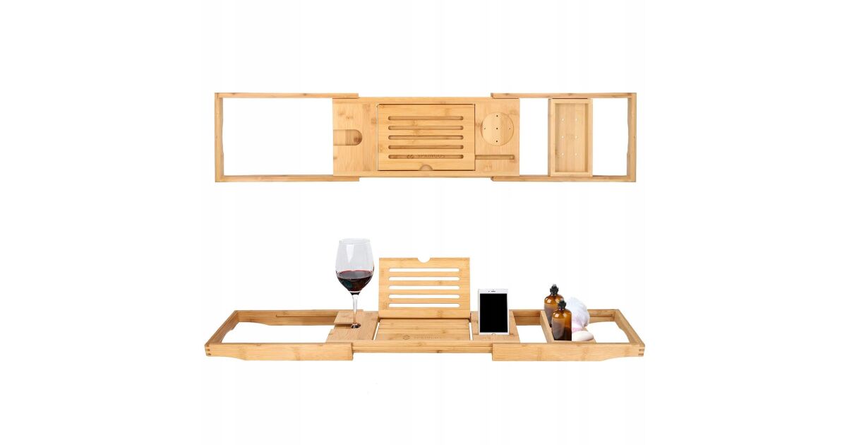 Állítható bambusz fürdőkád polc: Tökéletes kényelem a fürdőhöz 🛀