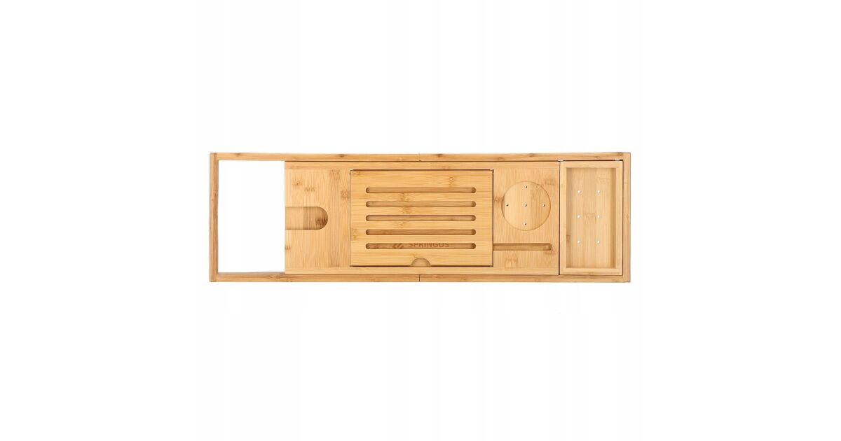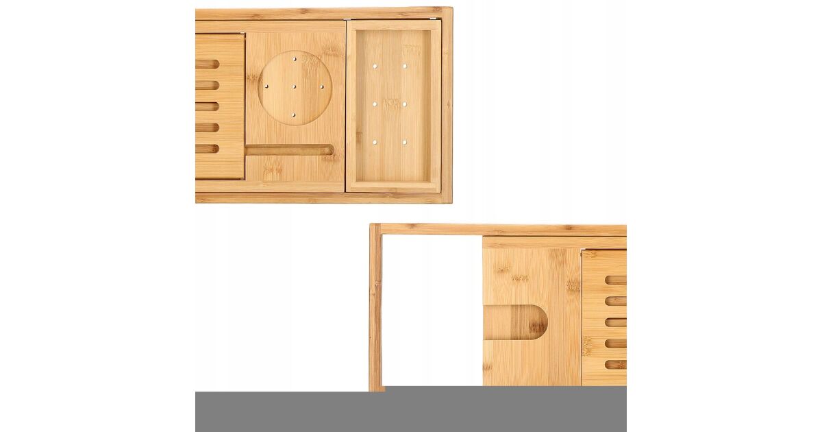 Springos Állítható bambusz fürdőkád polc, 75-110 cm-es kádpolc vélemények