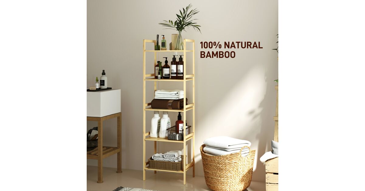HOMCOM Bambusz Fürdőszobai Polc: 5 állítható polccal a rendezett otthonért 🏡