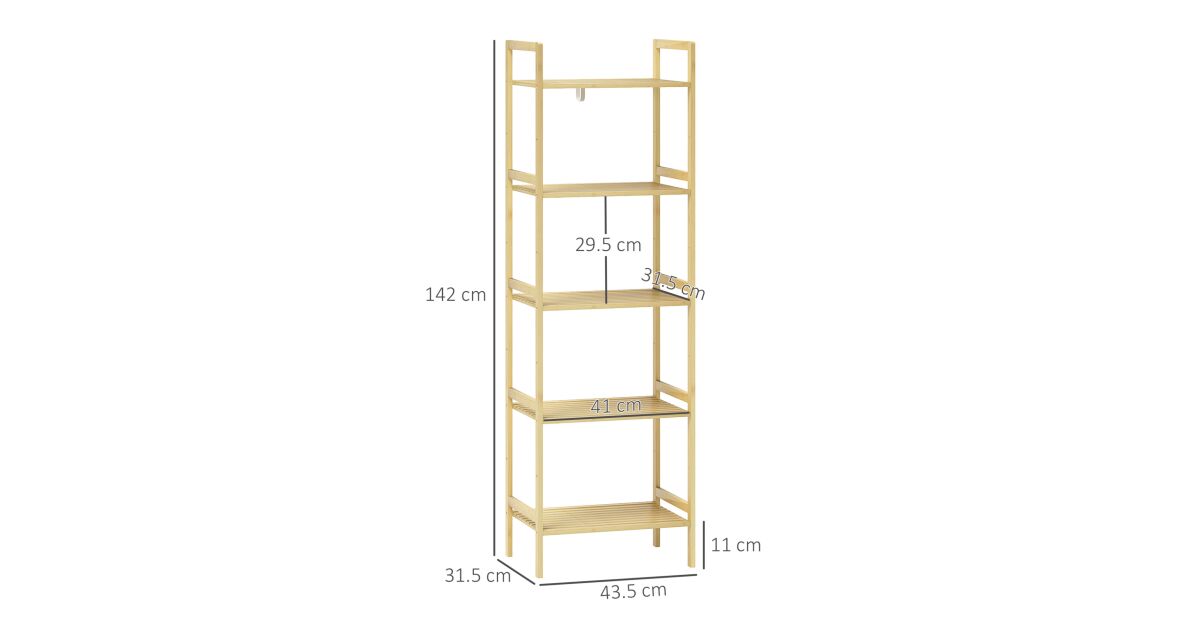 Ezt a terméket így is ismerheted: HOMCOM Fürdőszobai polc 5 magasságban állítható polccal bambuszból, 43,5x31,5x142 cm, natúr fa