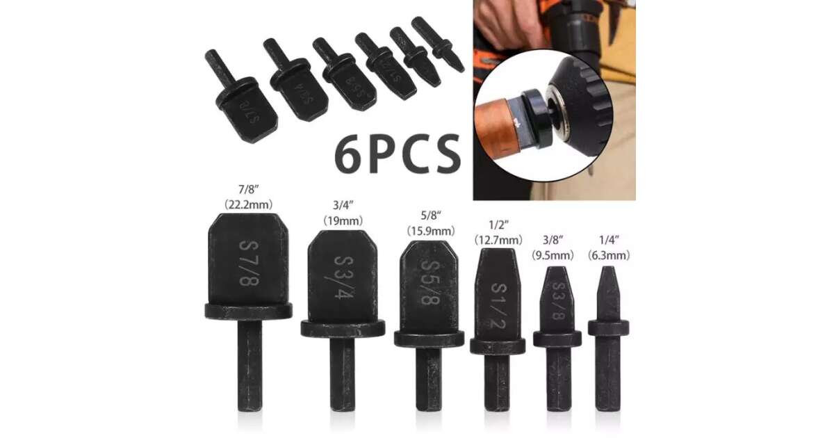 Ez a 6 darabos csőbővítő készlet tökéletes megoldás fa, műanyag, vékony fémlemez és acéllemez csövek pontos és gyors megmunkálásához. A különböző méretű fejekkel könnyedén illesztheted a csöveket, időt és energiát takarítva meg.
