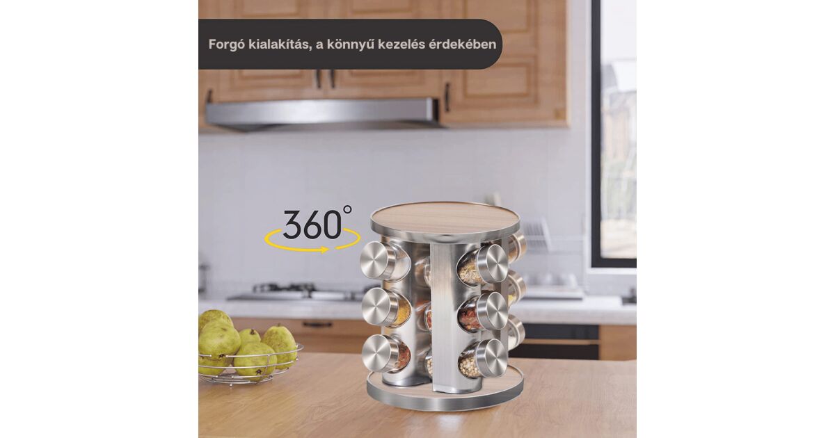 - 🔄 360°-ban forgatható: Könnyen megtalálod a kívánt fűszert.