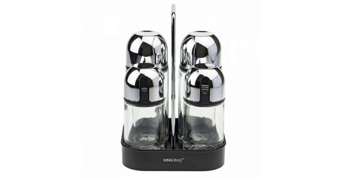 Ezt a terméket így is ismerheted: Kinghoff Ízesítőszerkészlet - 4 db Üveg Tartó - Króm