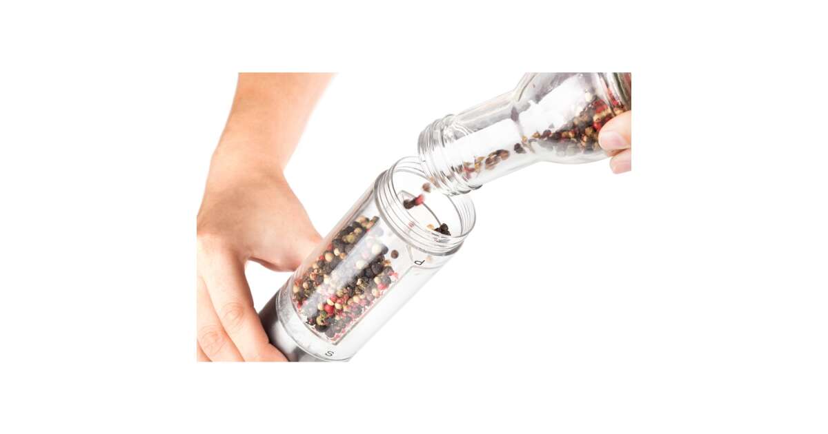 - Átlátszó tartályok: Könnyen ellenőrizhető a só és bors mennyisége