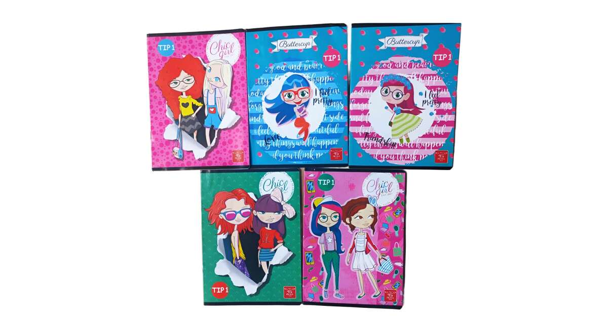 5 db Type 1 notebook készlet, Linomag®, iskolásoknak és tanároknak, modellek lányoknak, A5, 24 LAP, 70 gm², többszínű
