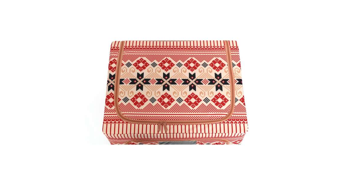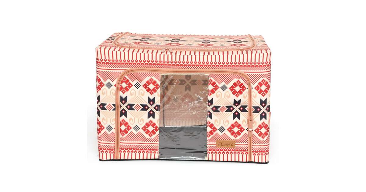 Ezt a terméket így is ismerheted: Összecsukható tárolódoboz, KeepHome, 100 l pamut és lenvászon, 60x42x40 cm, első ablak, 2 bejárati ajtó kétirányú cipzárral, fém keret, stabil műanyag alaptartó, hagyományos minta 1.