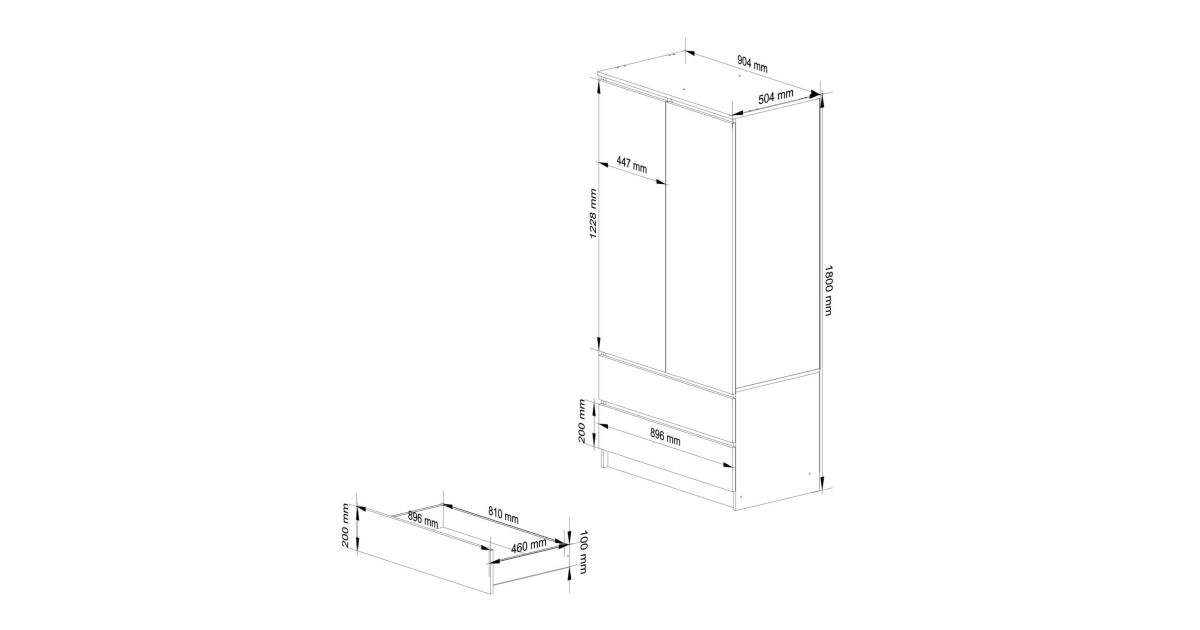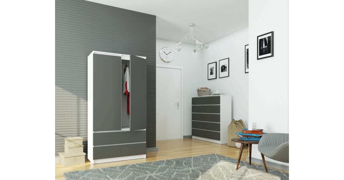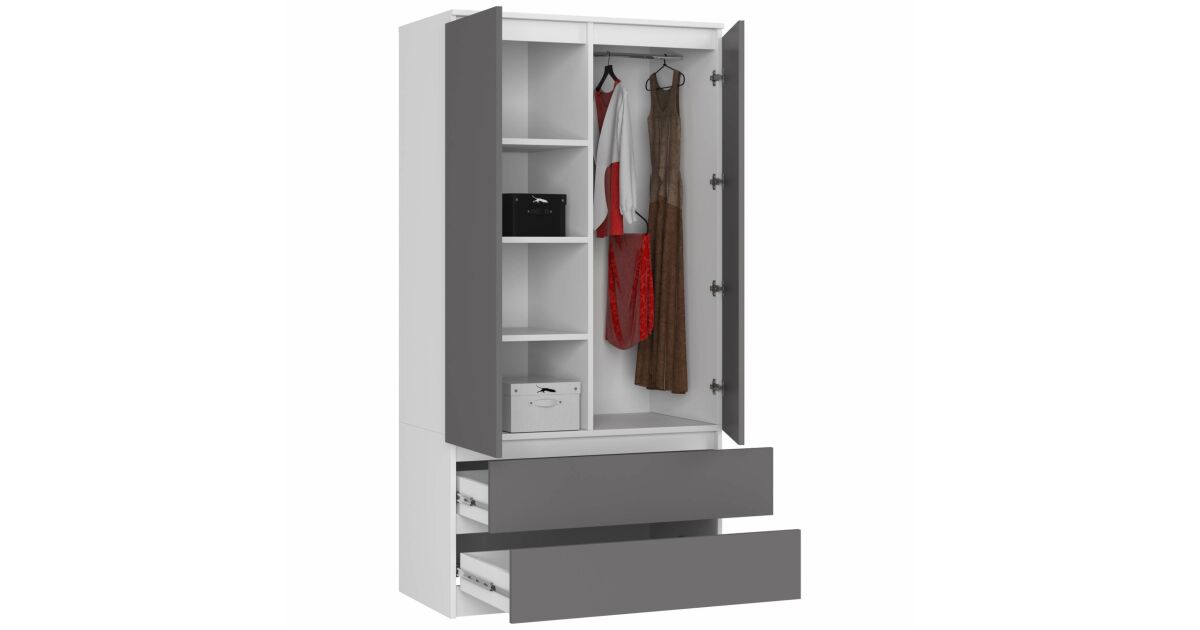 Ezt a terméket így is ismerheted: Akord Stojó Szekrény 2 Ajtóval és 2 Fiókkal, Fehér/Grafit Szürke - CLP Rendszer, Laminált Lemez, 90x180x51 cm, Modern Stílusú, Matt Felület, ABS Élzárás, Összeszerelhető Design