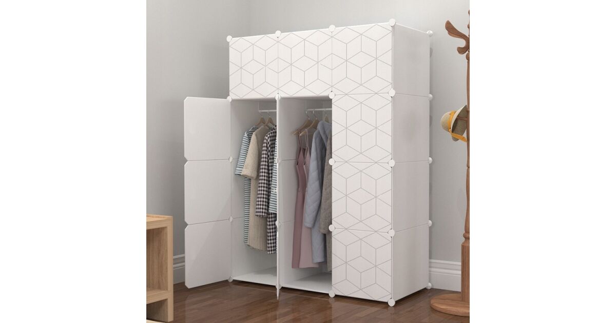 Ezt a terméket így is ismerheted: Geometrikus fehér moduláris szekrény – Gardrób és polcos tároló, XXL