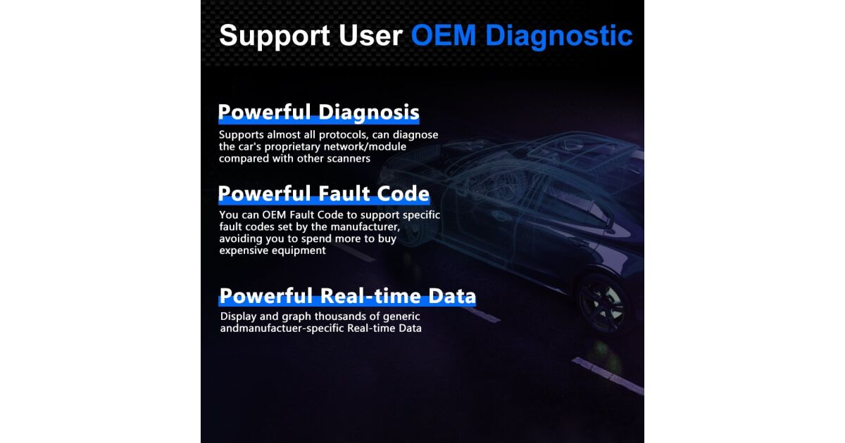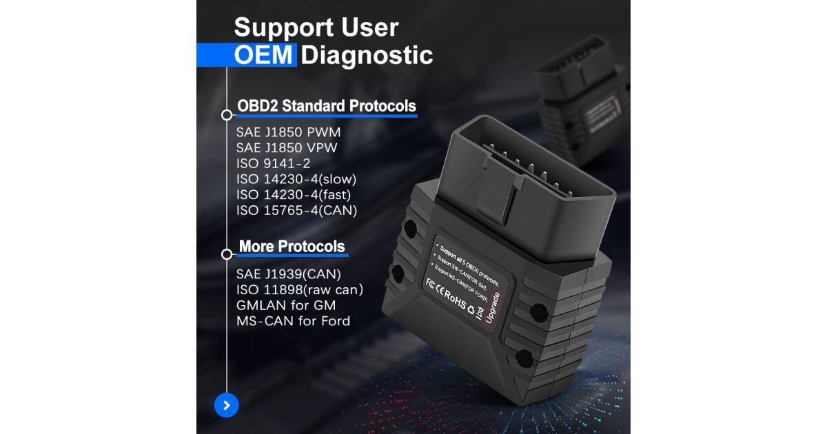- ⚙️ OEM protokollok támogatása (Ford MS-CAN, GM GMLAN stb.): Hozzáférés a gyártóspecifikus speciális funkciókhoz.