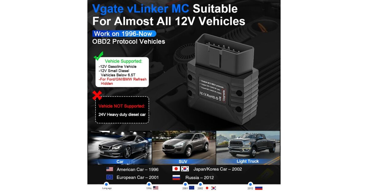 - ✅ Kompatibilis az amerikai (1996 utáni), európai (2001 utáni) és ázsiai (2002 utáni) járművekkel.
