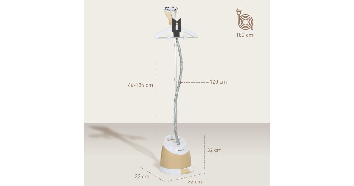 Ezt a terméket így is ismerheted: HOMCOM Függőleges Vasaló 1,8 literes Víztartállyal és Állítható Magassággal, 32x32x32 cm, Arany