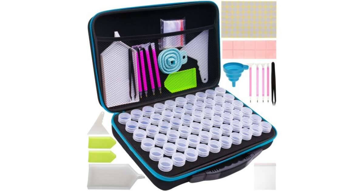 - 60 db átlátszó gyémánttartó tégely a rendezett tárolásért.