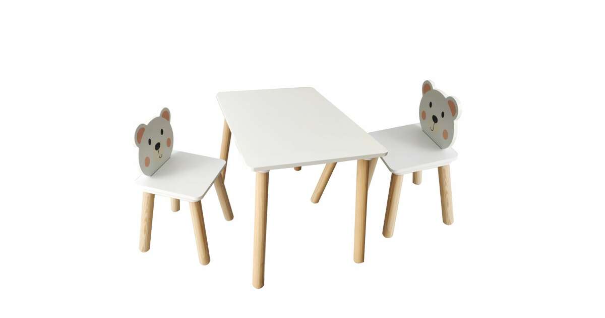 Ez a gyönyörű, macis mintás fa asztal és két szék szett tökéletes választás a gyermeked számára! Kiváló minőségű fából készült, így strapabíró és biztonságos, garantálva a hosszú távú használatot. A vidám maci minta minden kisgyermek szívét el fogja rabolni.
