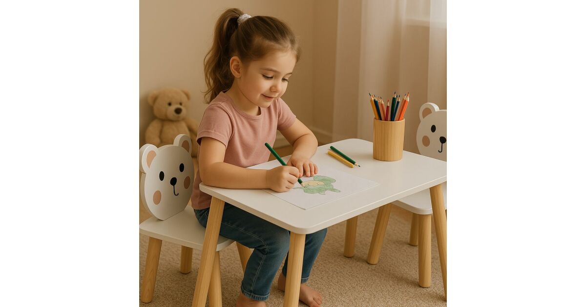 Macis Gyerek Asztal és Szék Szett: Vidám és Tartós Játékra 🐻