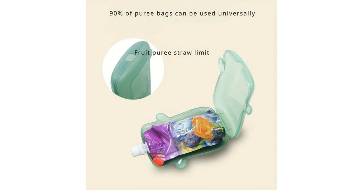 - Univerzális kialakítás: A legtöbb gyümölcspüré tasakkal kompatibilis.