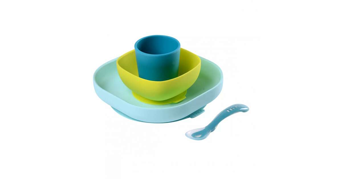 Beaba Szilikon Bébi Étkezőszett - 4 db - Kék vélemények