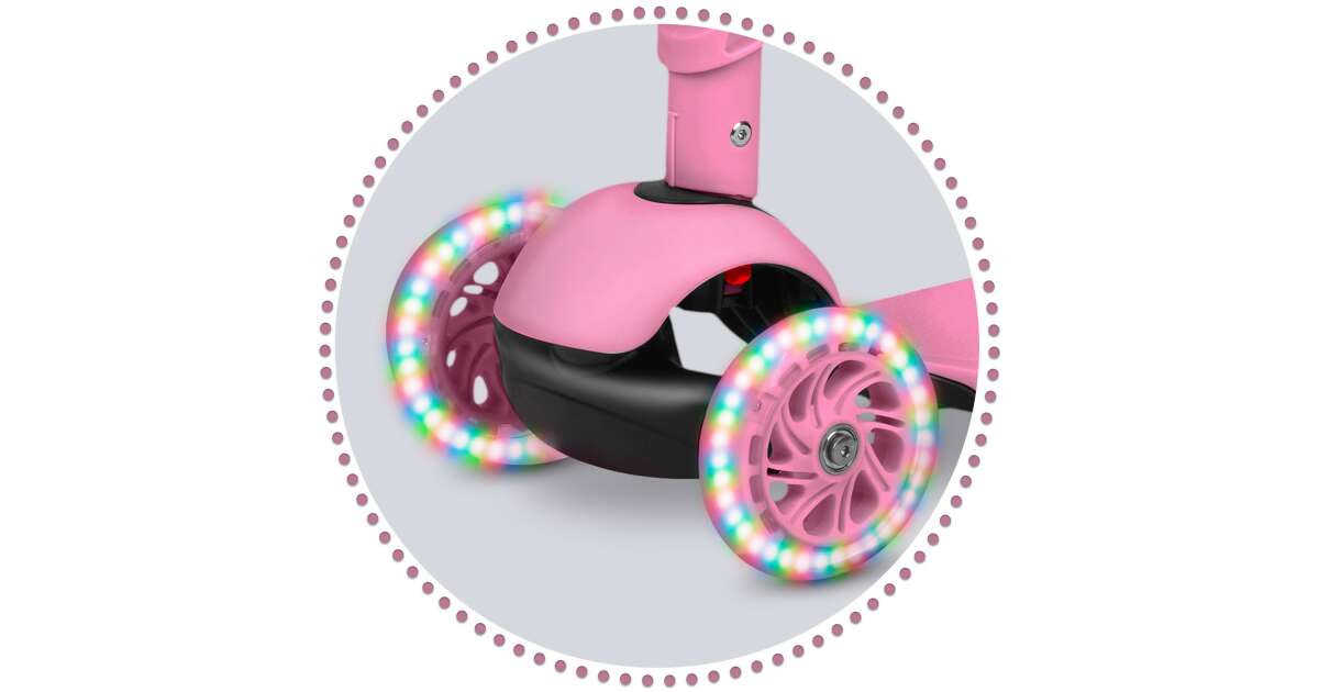 Ez a sokoldalú robogó 3 módon használható, így a gyermeked hosszú ideig élvezheti! Kényelmes üléssel, tolókarral és állítható kormánymagassággal rendelkezik, hogy lépést tartson a gyermeked növekedésével. A LED-es kerekek extra szórakozást biztosítanak! ✨ Az irányítás kizárólag a test egyensúlyozásával történik, kormány elforgatása nélkül. Csak enyhén kell a kívánt irányba dőlni és kész is van! A gyermek gyorsan elsajátítja ezt a vezetési technikát, miközben gyakorolja egyensúlyérzékét. A roller fordulás közben stabilan áll függőlegesen, a három keréknek köszönhetően.