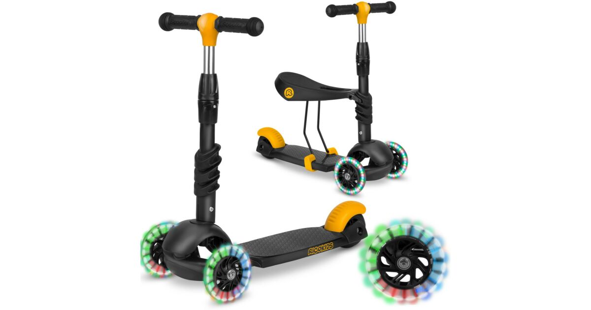 Ricokids 3in1 háromkerekű Roller világítós kerekekkel - Fekete, Sárga vásárlás: