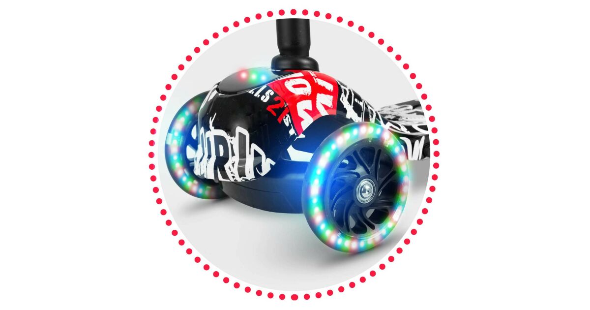 - ✨ LED világítás: A kerekek, a platform és az előlap is világít, így nappal és éjszaka is feltűnő és szórakoztató a roller.