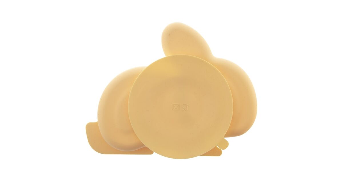 Ezt a terméket így is ismerheted: Gyerek szilikon tányér, osztott, sárga nyuszi, 23x18,5x3,5 cm