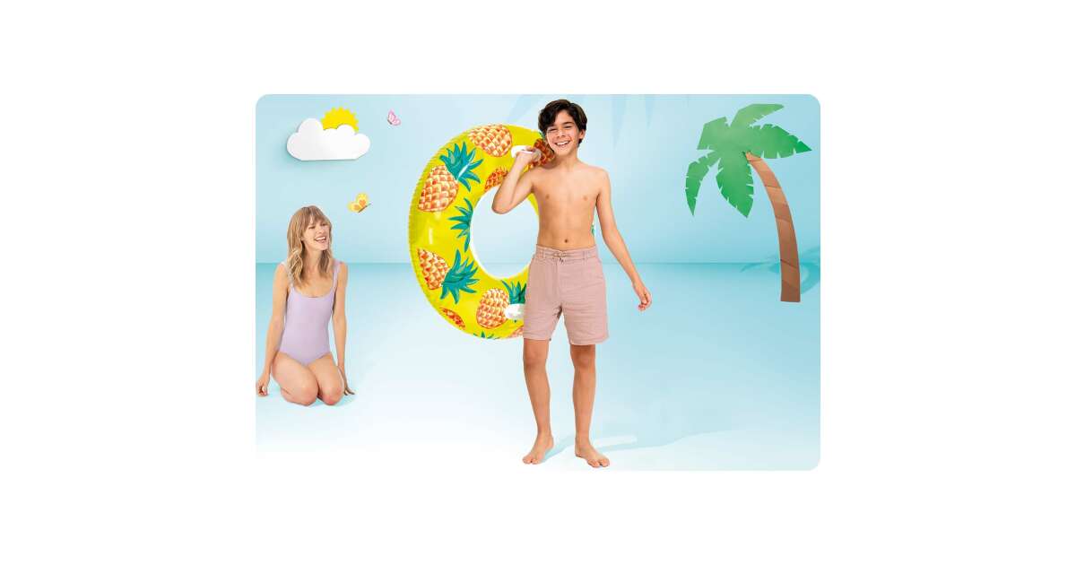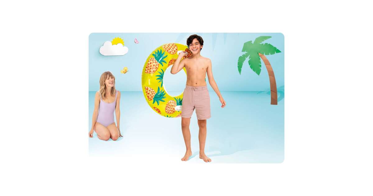 Ez az Intex ananász mintás úszógumi tökéletes választás a nyári szórakozáshoz! 107 cm átmérőjével kényelmes és biztonságos úszást biztosít a medencében, a tónál vagy a tengerparton.