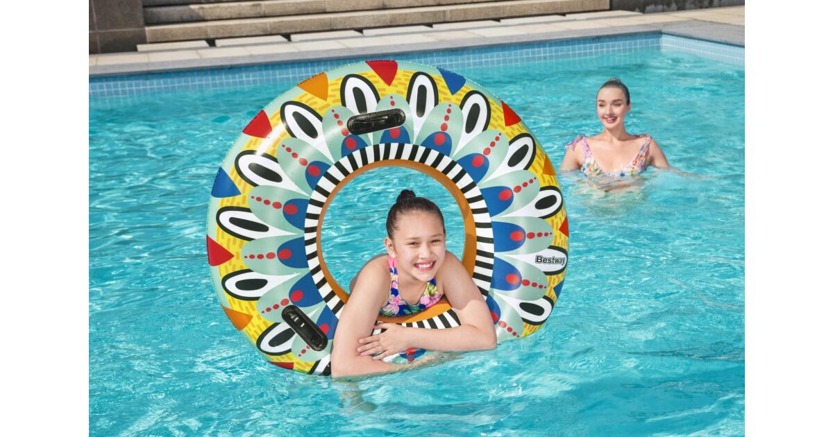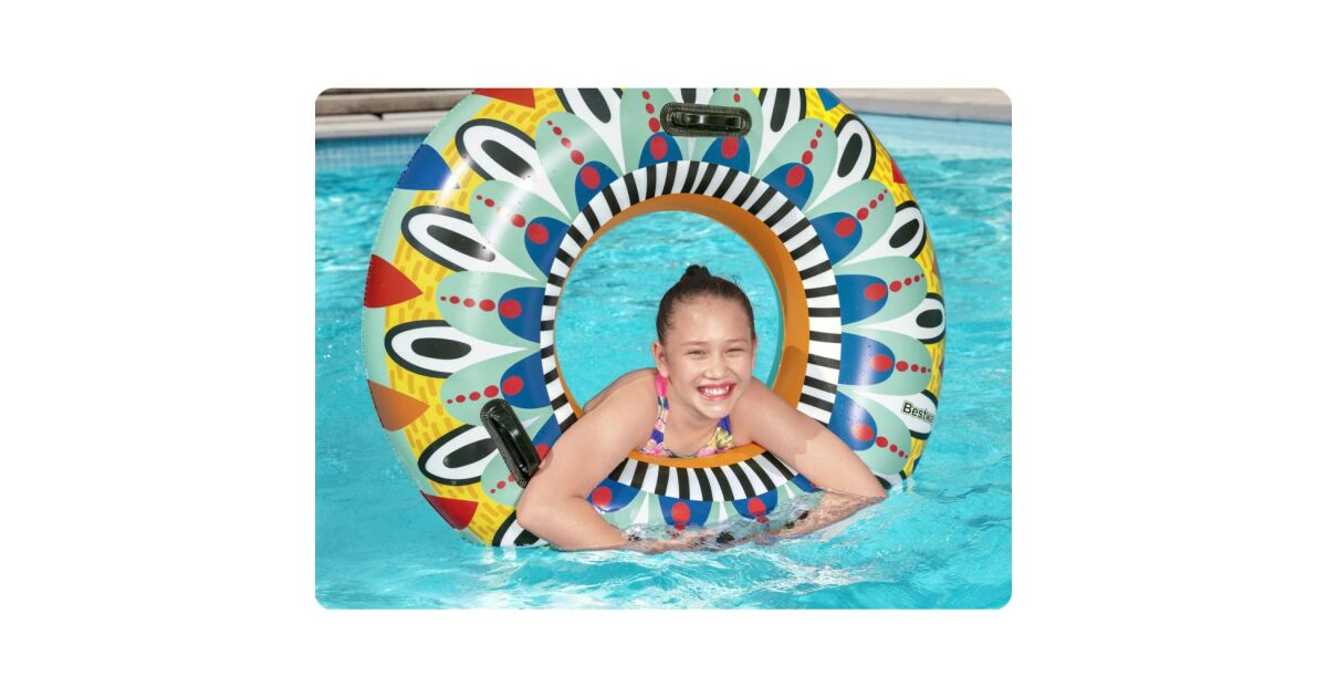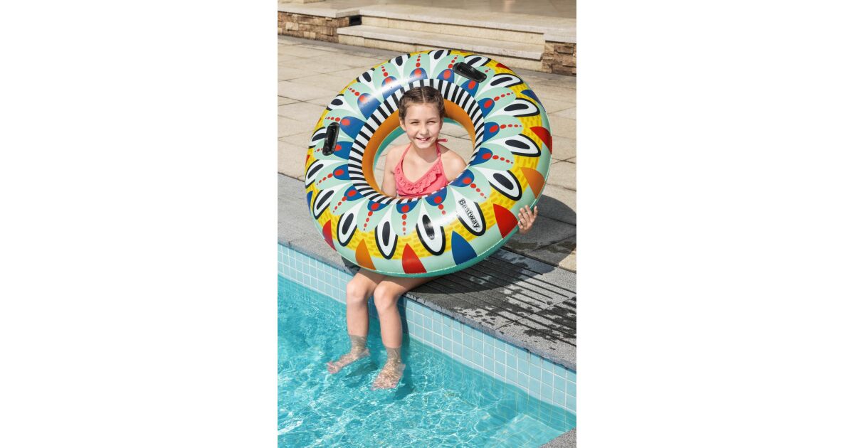 Ez a Bestway Art Collection™-ből származó, színes úszógumi tökéletes választás a nyári napokra. Az élénk, azték ihletésű mintája mindenkit elkápráztat a strandon vagy a medencénél. Kényelmesen lubickolhatsz benne, és gyönyörű fotókat készíthetsz vele! 😎