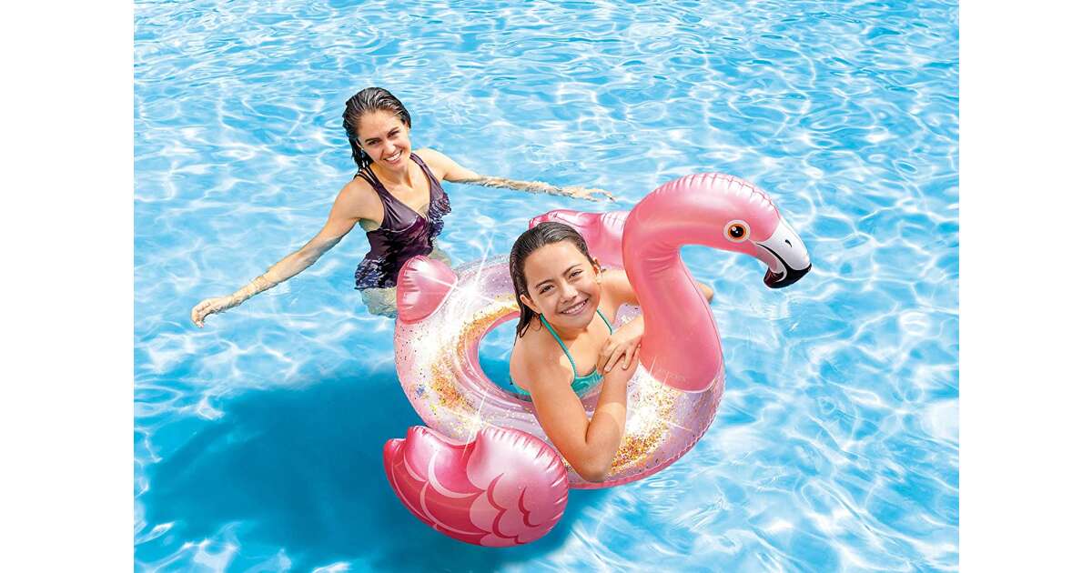 Ez a gyönyörű, rózsaszín Intex glitteres flamingó úszógumi tökéletes választás a medencéhez, tóhoz vagy tengerhez. A kislányok imádni fogják! ✨