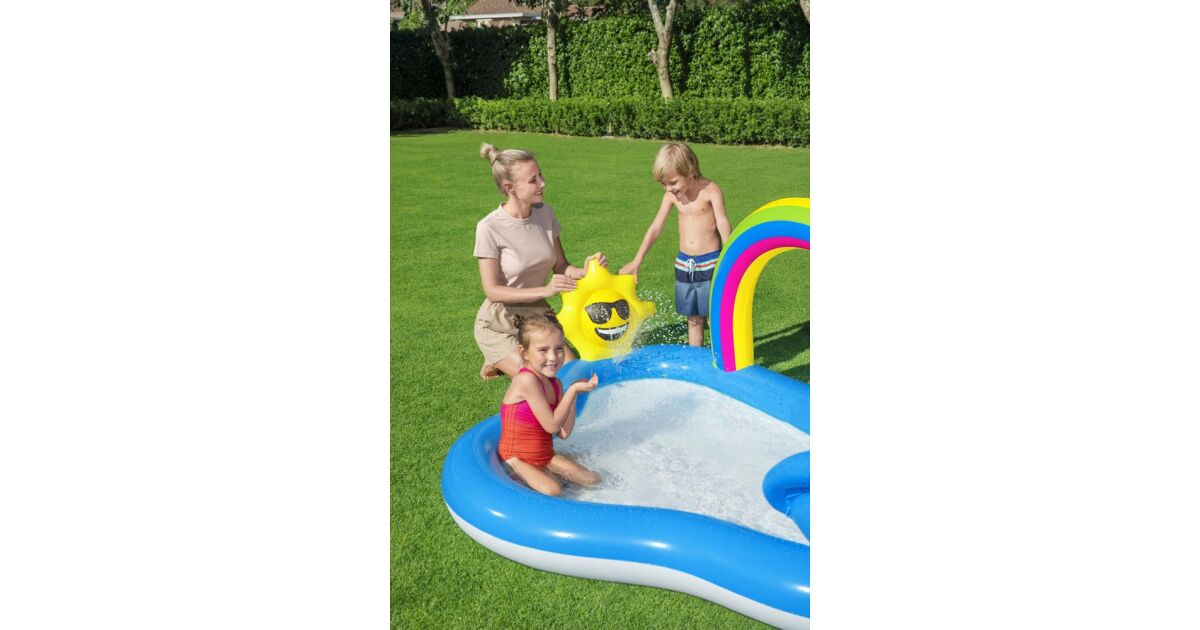 Felfújható játszótér 257 x 145 cm x 91 cm Bestway 53092 Szeretné gyermekét felejthetetlen szórakozásban részesíteni kertje magányában? Ez a felfújható játszótér igazi szórakoztató központtá varázsolja gyermekét. Egy felfújható attrakciókkal, például felfújható csúszdával és szökőkúttal ellátott medence biztosan elkápráztatja a kicsiket, és kedvenc játszóhelyévé válik. A medence puha, mégis tartós anyagból készült, és a lehető legbiztonságosabb a legkisebbek számára. A színes, felhő alakú medence biztosan minden gyermek figyelmét felkelti. Főbb jellemzők: - medence - felfújható csúszda - szökőkút - javítófolt mellékelve - színek gazdagsága - színes nap - színes szivárvány Műszaki adatok: - Méretek: 257 x 145 cm x 91 cm - Anyag: PVC - Ajánlott életkor: 2 éves kortól - 170 literes űrtartalom Súly: 4 kg A csomag mérete: 30 cm x 30 cm x 12 cm.