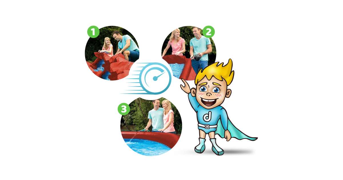 - Könnyű felállítás: Egyszerűen helyezze egy sík felületre, fújja fel a peremét, és töltse fel vízzel! Percek alatt kész a nyári móka! 🚀