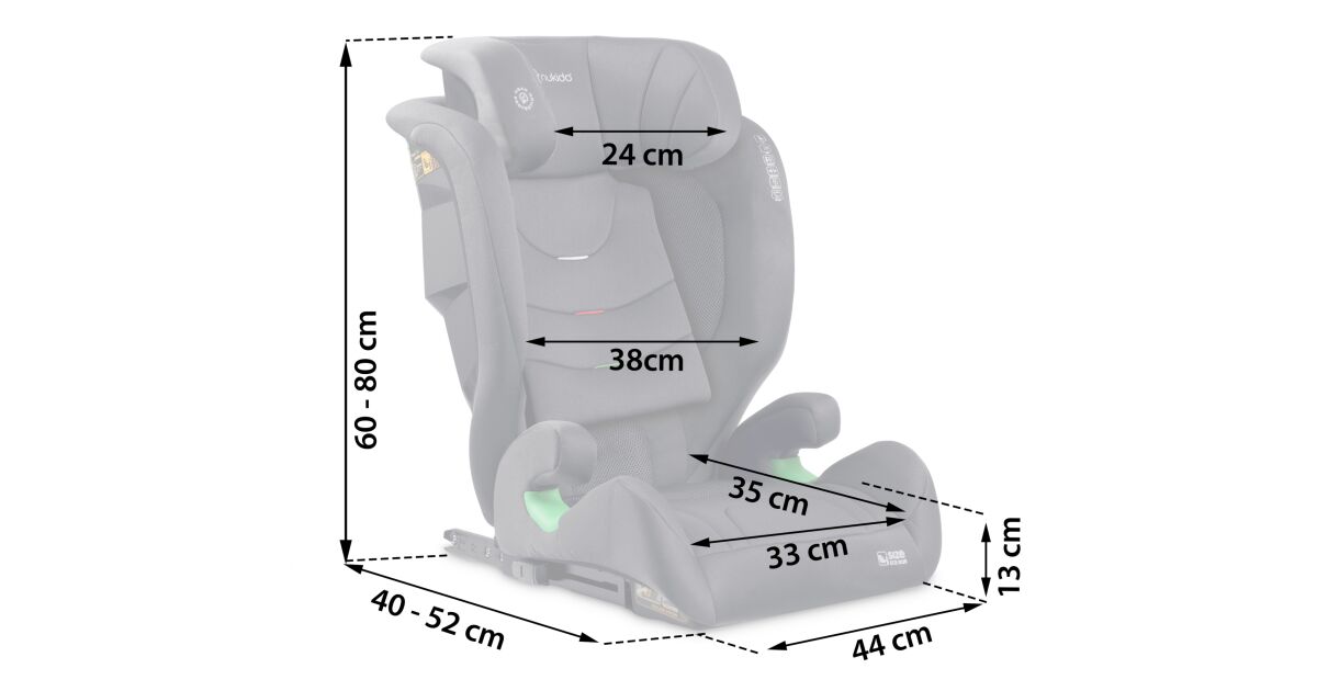 - II. csoport (15-25 kg): 3-7 éves korig - ISOFIX rendszerrel és biztonsági övvel rögzíthető.