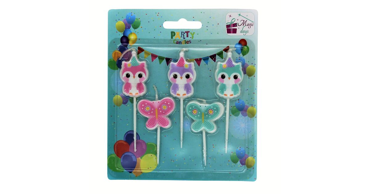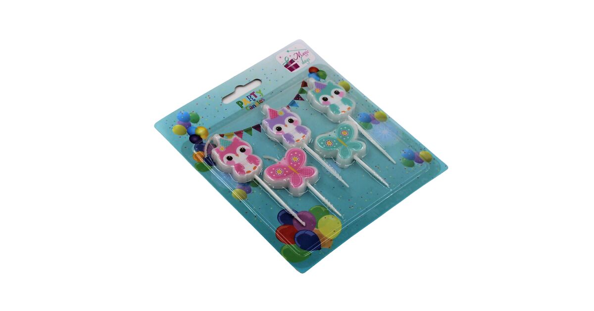 Vidám, színes gyertyák születésnapi torták díszítéséhez! Készítsd még emlékezetesebbé a születésnapi ünneplést ezekkel a bájos bagoly és pillangó mintás gyertyákkal.