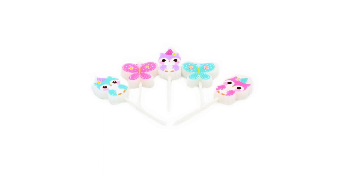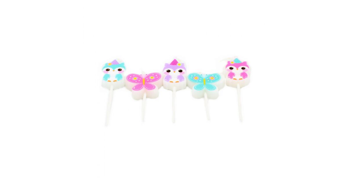 Bagoly és Pillangó Tortádísz Gyertyák - 5 db-os szett 🎂🦉🦋