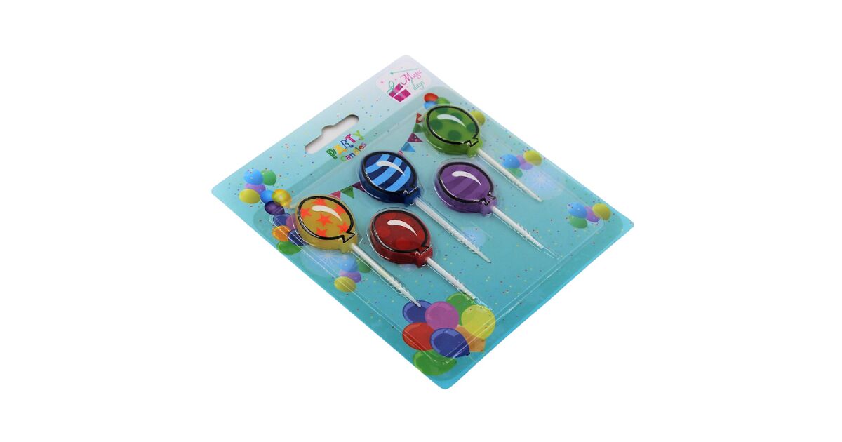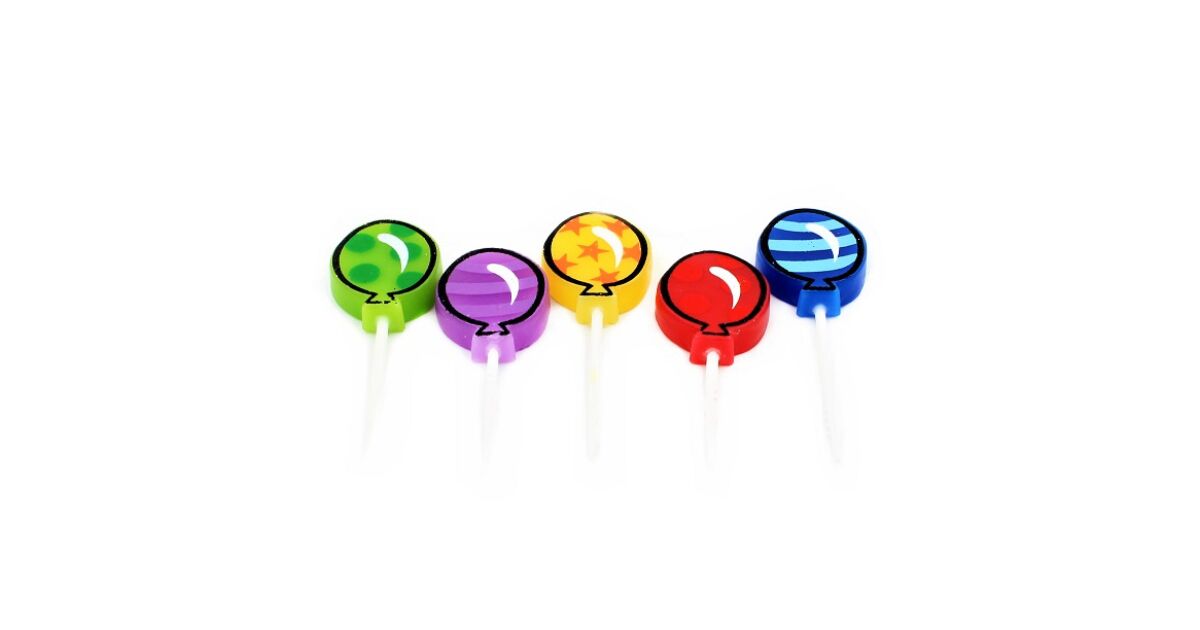 Ezekkel a cukiságfaktorral teli, lufi alakú gyertyákkal garantáltan felejthetetlen lesz a születésnapi parti! A 5 darabos készlet 5 különböző színű és mintájú gyertyát tartalmaz, így mindenki megtalálja a kedvencét. Tökéletesek tortára, süteményre, vagy bármilyen ünnepi alkalomra.