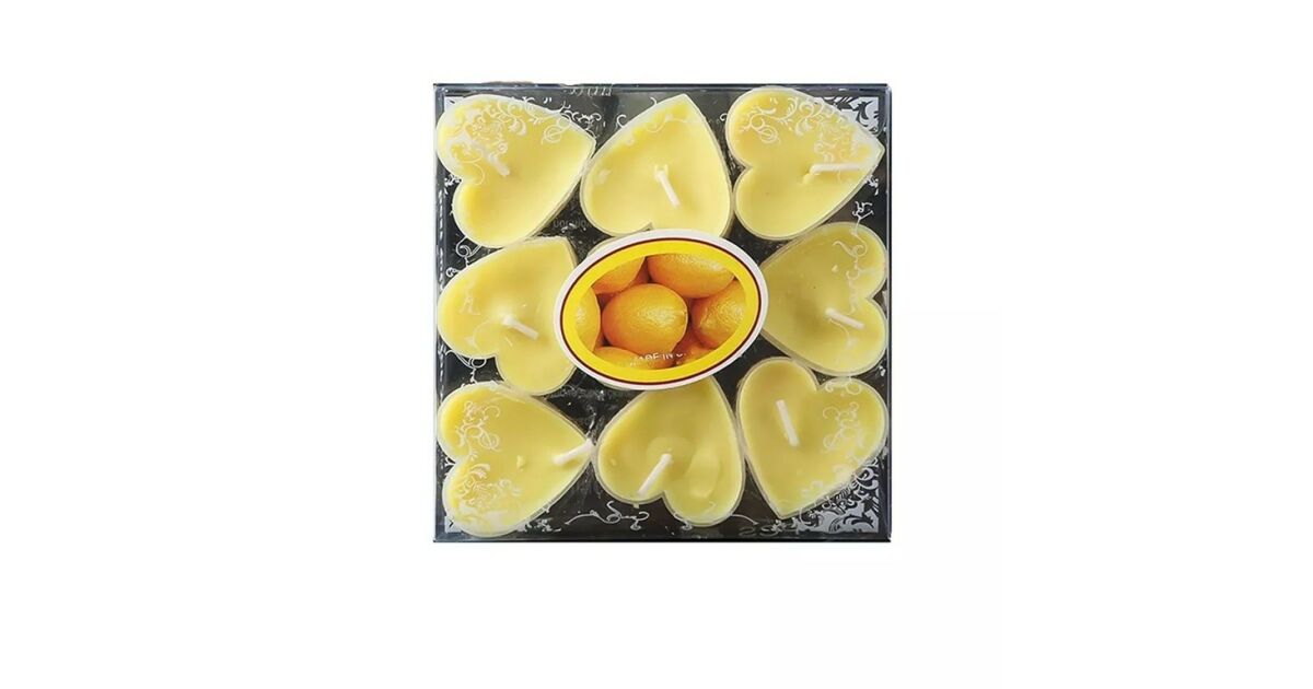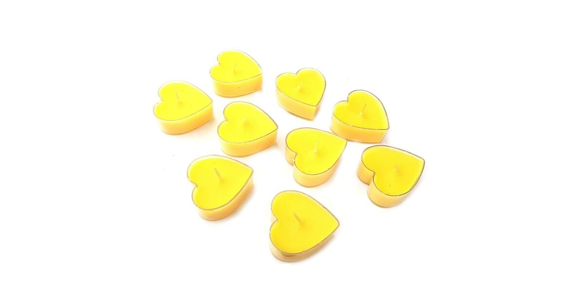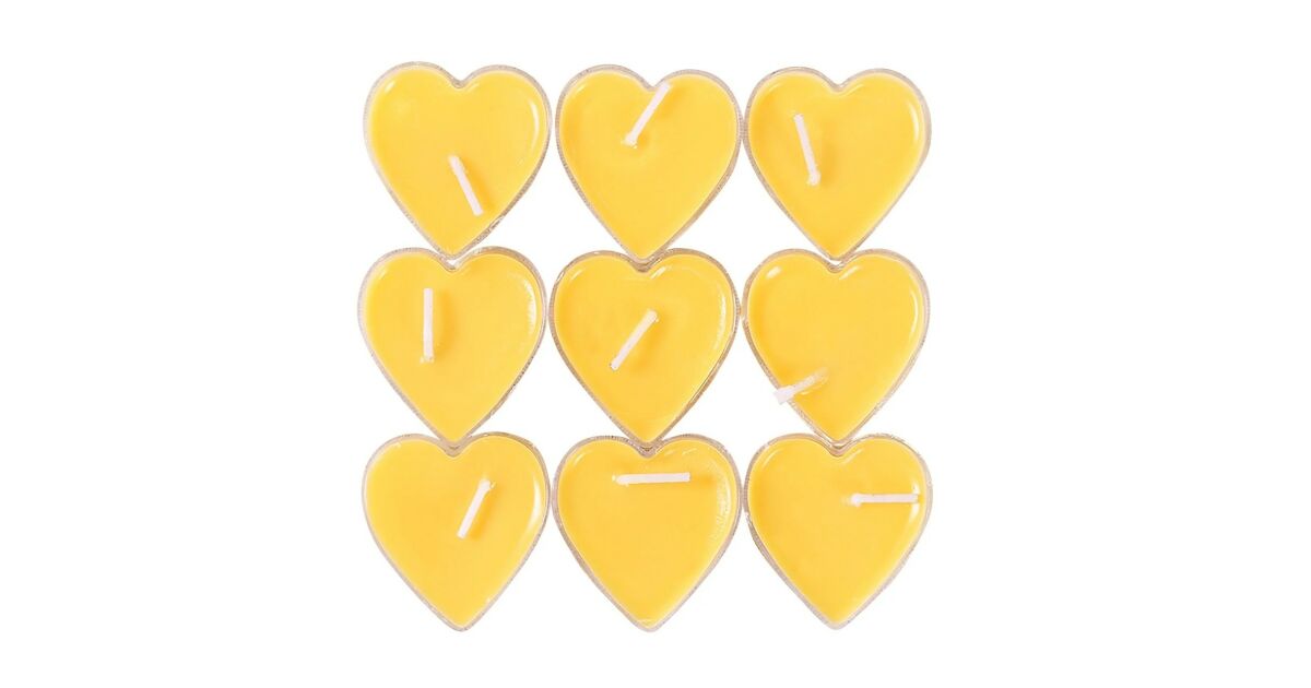 Ezt a terméket így is ismerheted: 9 db-os szív alakú gyertya készlet, KipHome, Valentin-napra, Citrus illat, Égési idő 3,5 óra, Paraffin, 4 x 2 cm, Sárga
