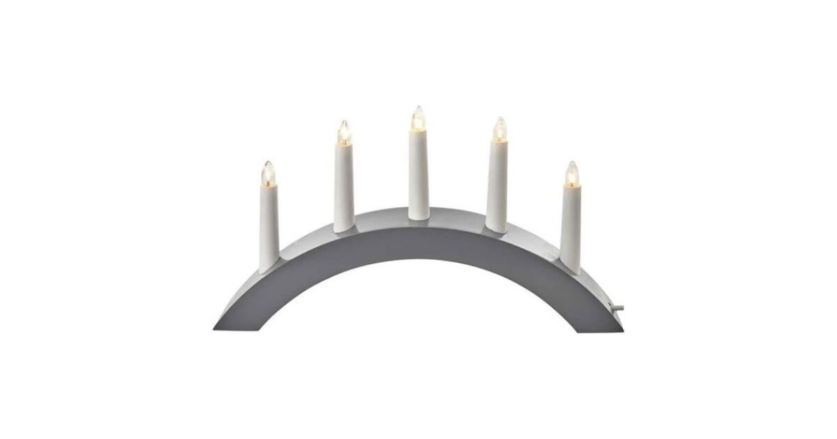 Ez az elegáns, ívelt gyertyatartó 5 db E10 izzóval tökéletes választás, ha hangulatos, meleg fényt szeretnél teremteni otthonodban. A szürke fa dizájn modern és letisztult megjelenést kölcsönöz, bármilyen enteriőrbe illeszkedik.