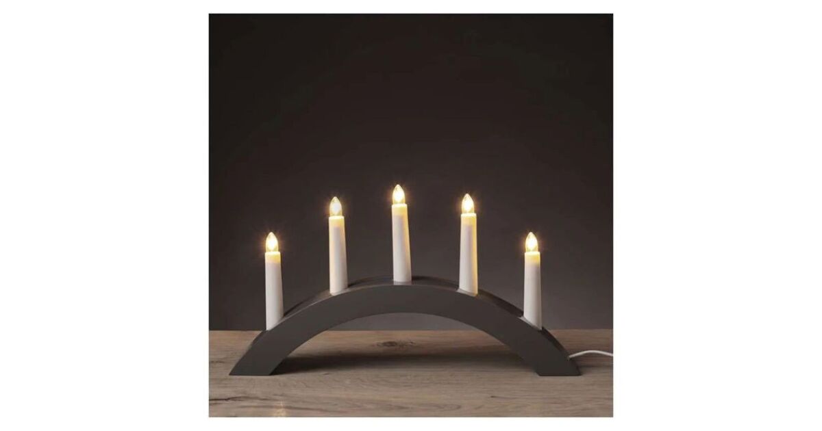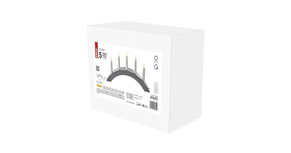 Ezt a terméket így is ismerheted: Emos DCAZ02 20x38 cm beltéri meleg fehér fa szürke ívelt gyertyatartó 5 db E10 izzóval