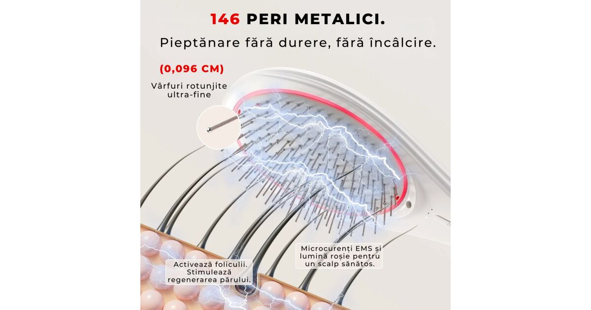 - 💪 Mély stimuláció EMS mikroáramokkal: Javítja a vérkeringést és a tüszők oxigénellátását, támogatva a regenerációt és csökkentve a hajhullást.