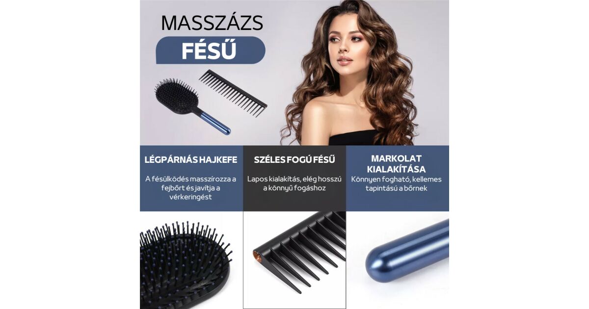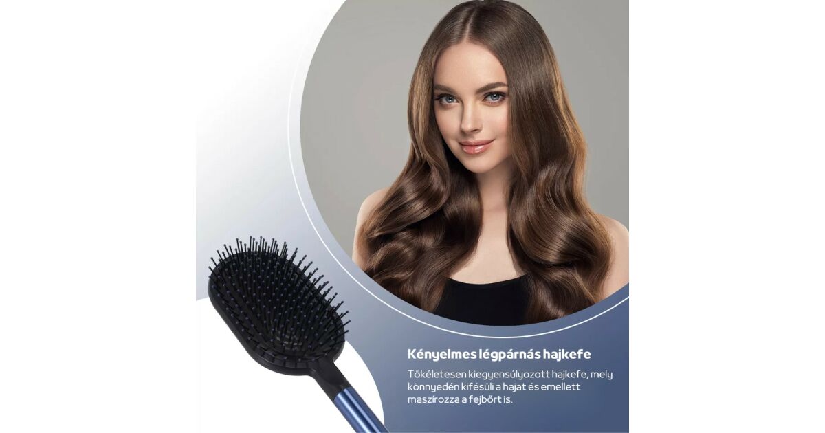 | Csomag tartalma | 1 db légpárnás hajkefe, 1 db széles fogú fésű |
