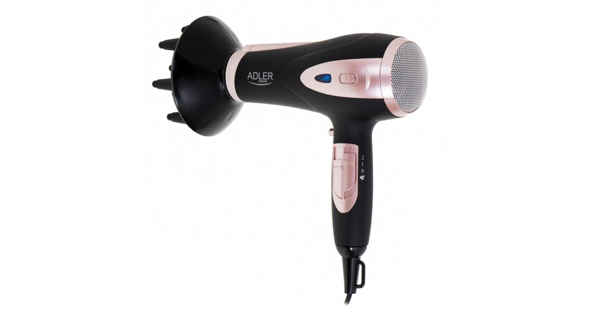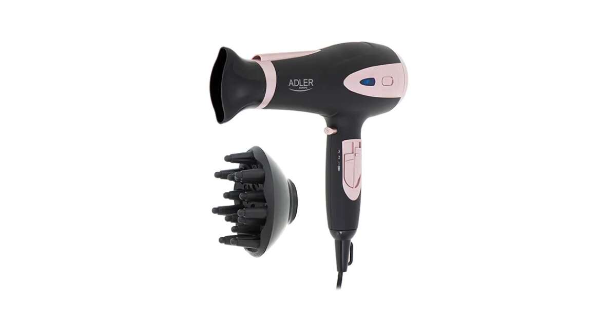 Ezt a terméket így is ismerheted: Adler AD 2248b hajszárító, 2200 W, ionizációs funkció, 3 hőmérséklet-beállítás, 2 sebességfokozat, diffúzor, fekete-rózsaszín