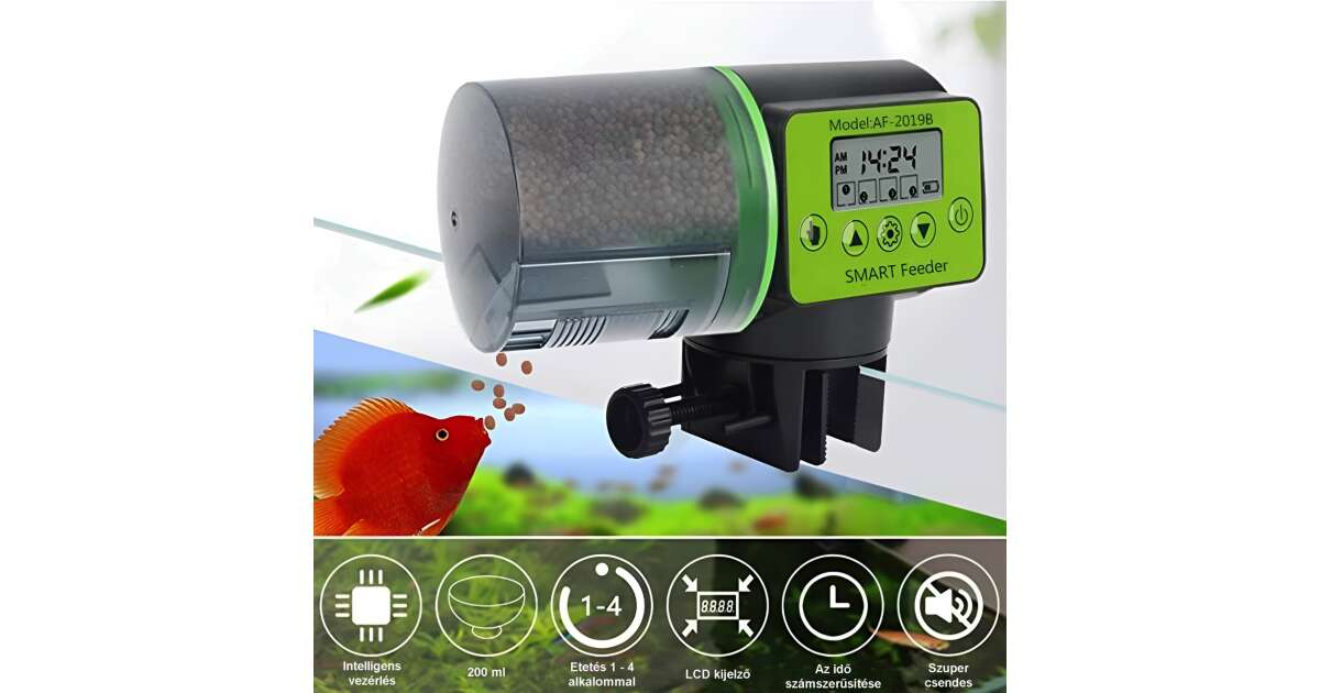 Ezt a terméket így is ismerheted: Akváriumi okos etető, ZEQAS, 200 ml-es tartálykapacitás, univerzális, kézi és automatikus használat, két rögzítési móddal, csendes, LCD kijelző, digitális időzítő, tartalmazza az elemeket
