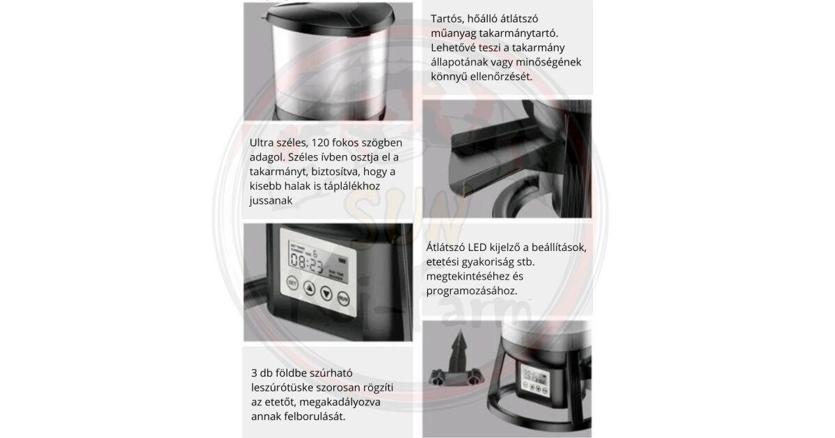 - Programozható: 1-6 etetés naponta