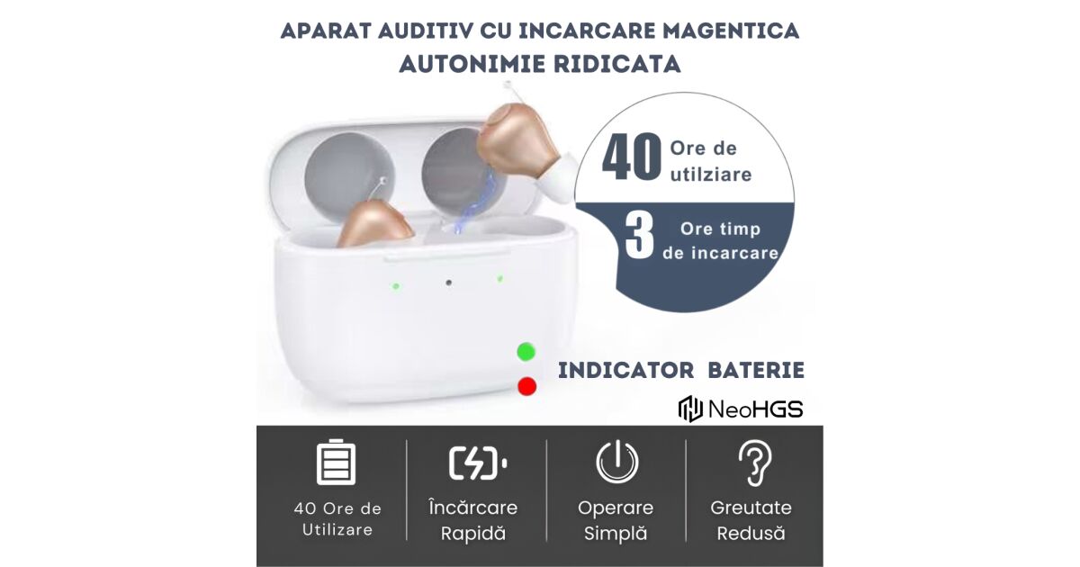 Ezt a terméket így is ismerheted: Digitális hallókészülék x2 NeoHGS, tiszta hang, 40 óra használat, gyors töltés, egyszerű kezelés, kompakt és könnyű kialakítás, beépített akkumulátor töltöttségi szint kijelző, tok akkumuláto