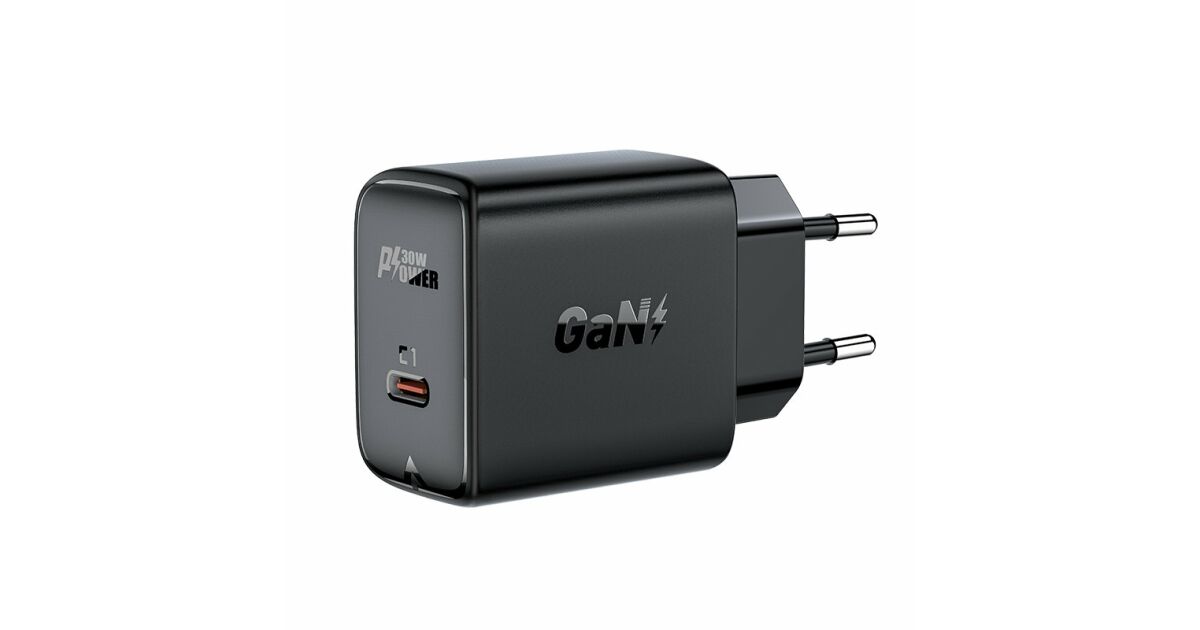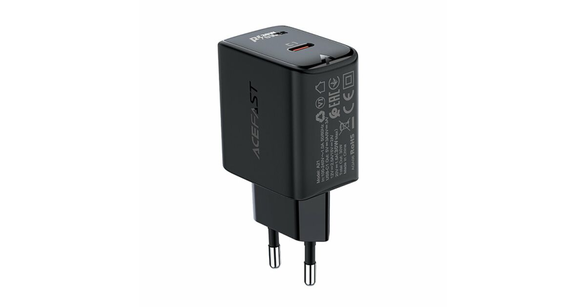 Acefast töltő GaN USB Type C 30W, PD, QC 3.0, AFC, FCP fekete (A21 fekete)