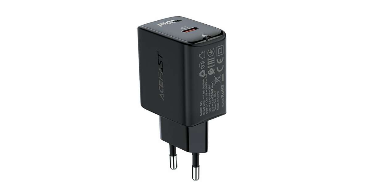 Acefast töltő GaN USB Type C 30W, PD, QC 3.0, AFC, FCP fekete (A21 fekete) vásárlás: