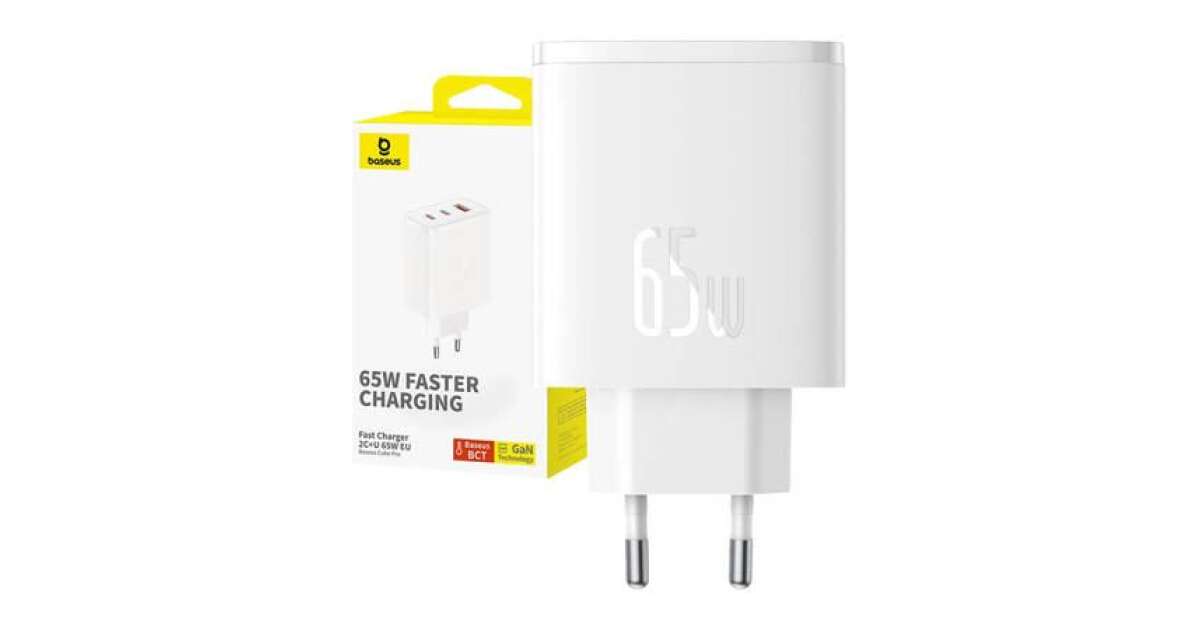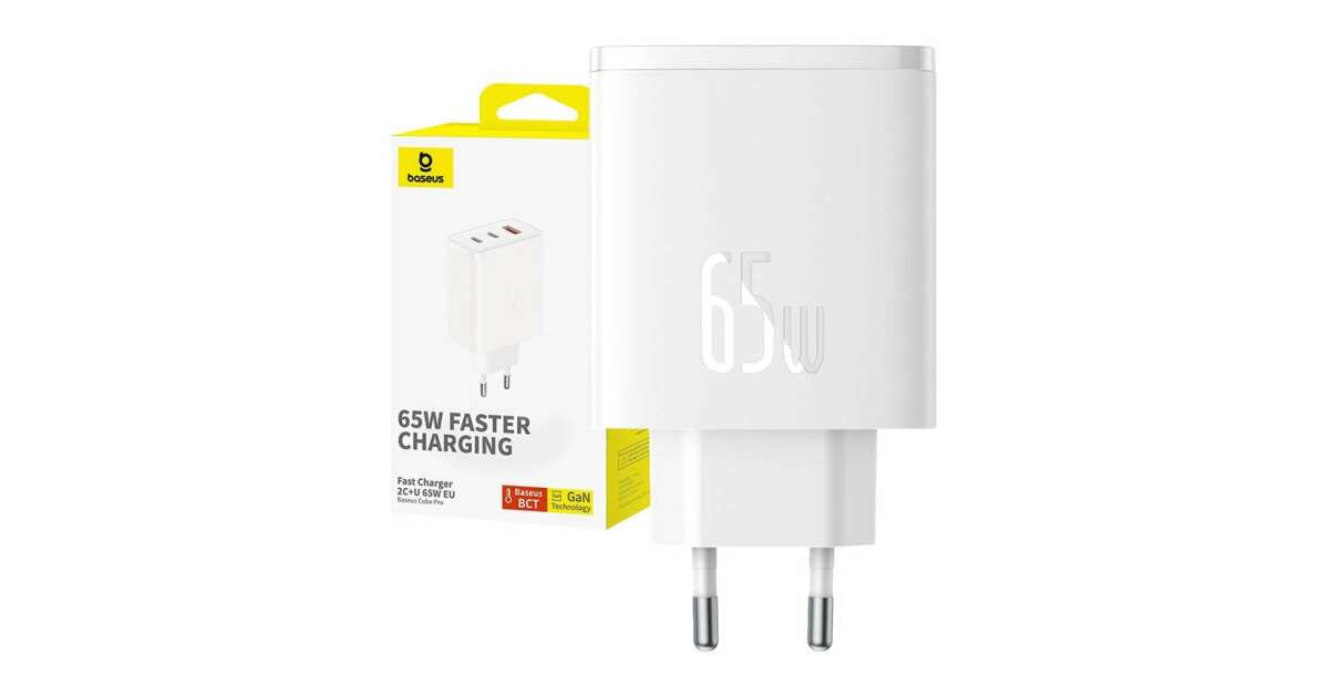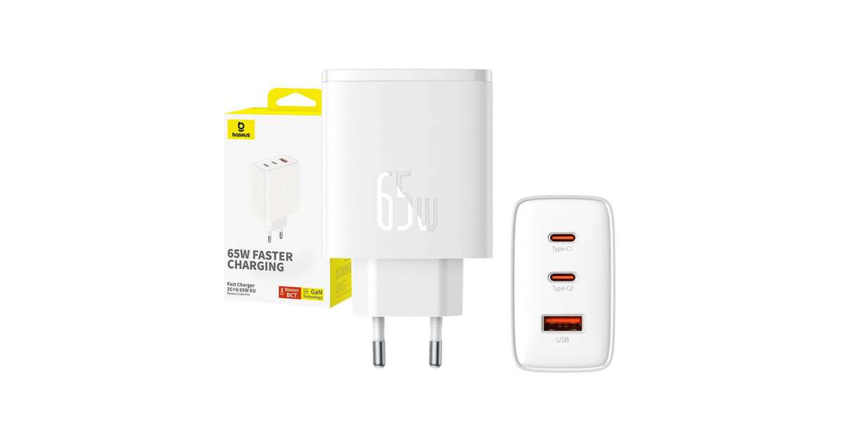 Ezt a terméket így is ismerheted: Baseus OS-Cube Pro 2x USB Type-C / 1x USB-A Hálózati töltő - Fehér (65W)