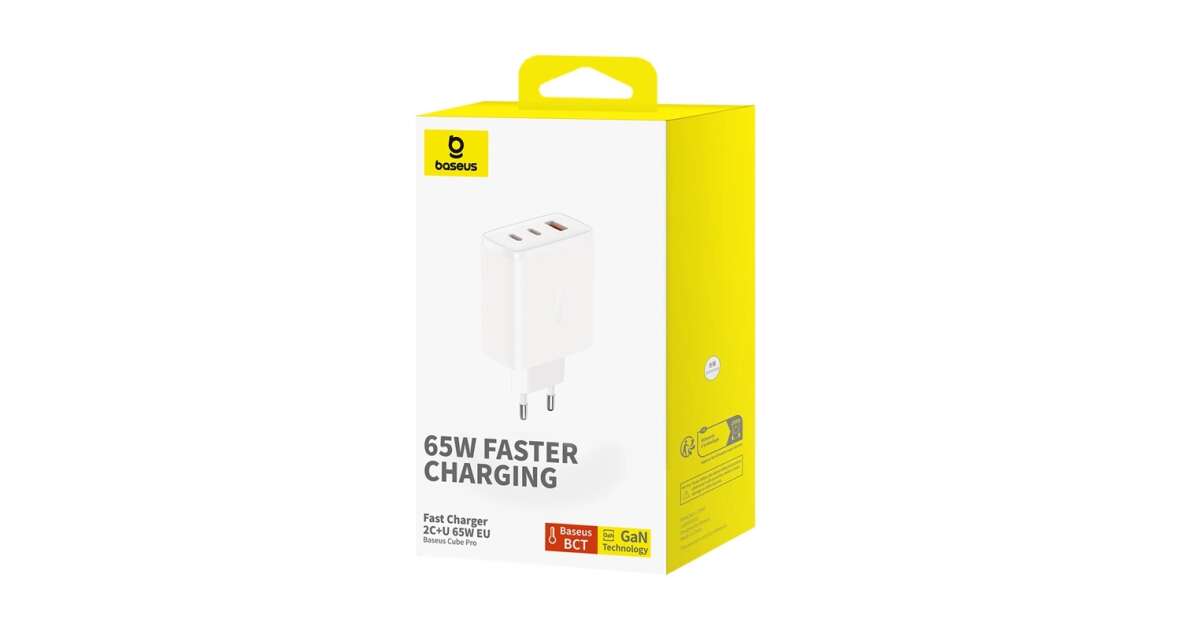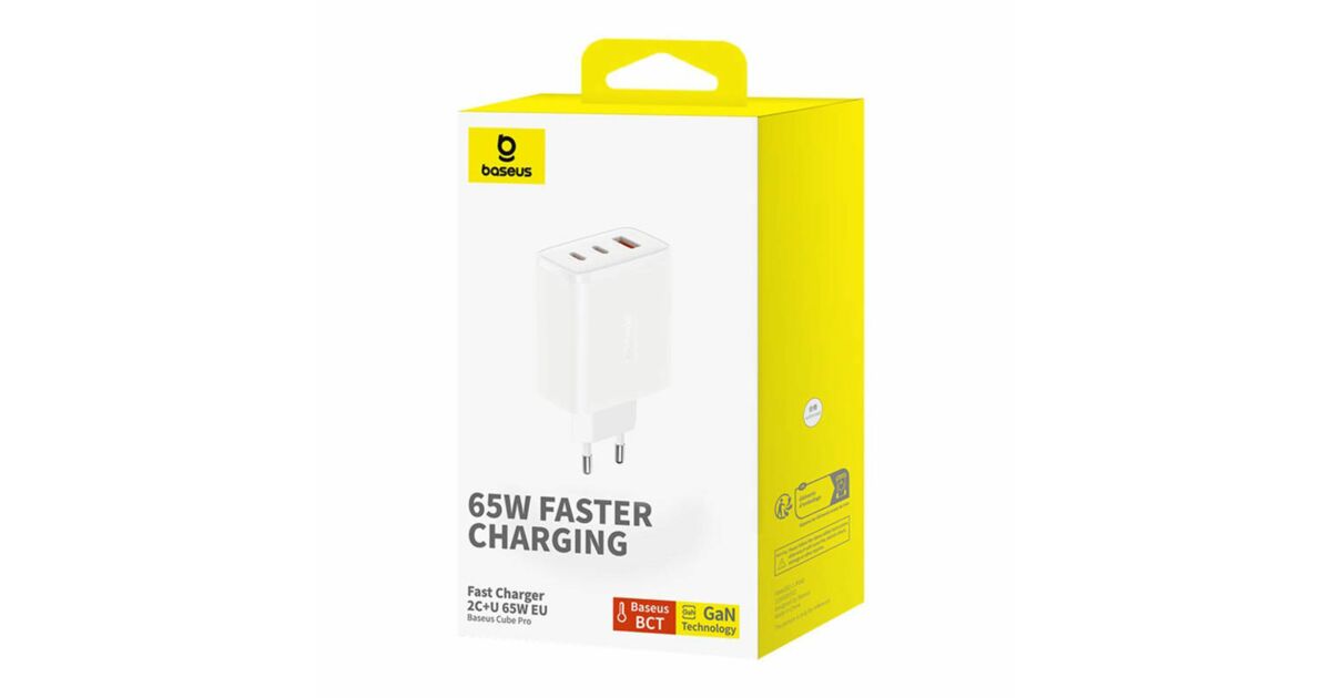A Baseus OS-Cube Pro 65W töltővel időt és energiát takaríthat meg, miközben eszközei biztonságosan és gyorsan töltenek.