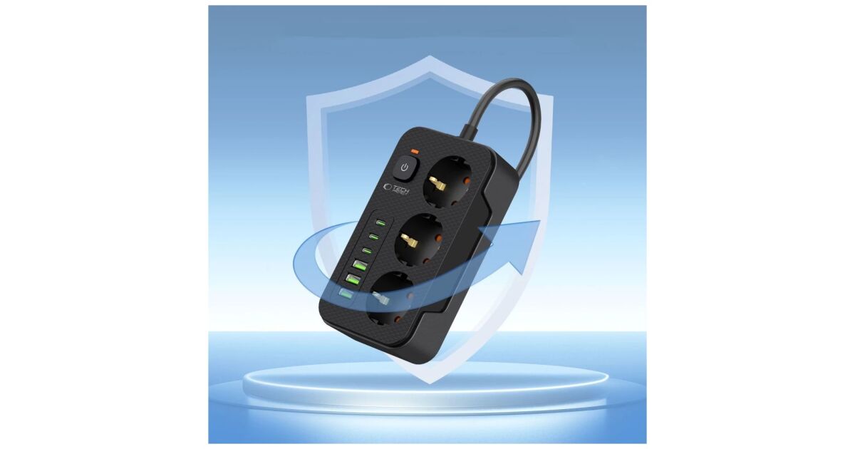 A funkcionális Tech-Protect PC3X6 hálózati elosztó további USB-portokkal ideális megoldás azok számára, akik többfunkciós eszközt keresnek eszközeik áramellátásához és töltéséhez. Három hálózati aljzattal, három USB-A és három USB-C porttal felszerelve egyszerre több eszköz csatlakoztatását teszi lehetővé, így biztosítva a rendet és a biztonságot.